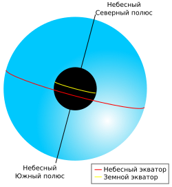Dünyanın oxu dünyanın mərkəzindən keçən xəyali bir xəttdir və onun ətrafında səma sferası fırlanır. Dünyanın oxu göy sferasının səthi ilə iki nöqtədə kəsişir — şimal qütbü və cənub qütbü. Göy sferasına daxildən baxdıqda səma sferasının fırlanması şimal qütbünün ətrafında saat əqrəbinin əksinə baş verir.