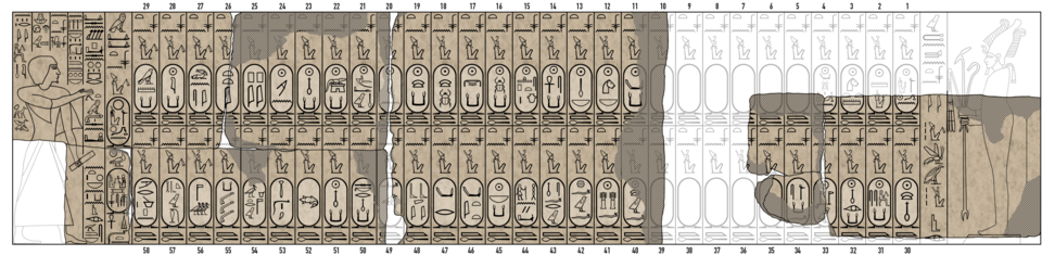 | 29 | Raneferef (Neferefre) | V sülalənin V hökmdarı. Xələfi Niuserre göstərilməmişdir. | 58 | II Ramzes | XIX sülalənin III hökmdarı (bir qədər pozulmuş mətn) |