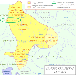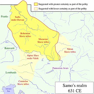 Fredegarın məlumatına görə 623-cü il üsyanı ilə əlaqədar olaraq knyaz seçilən Samo 658-ci ilədək qərb slavyanlarının tayfa birliyinin idarə etmişdi. O, avarlara qarşı müvəffəqiyyətlə mübarizə aparmış, sonra isə Frank kralı Daqoberli məğlubiyyətə uğradaraq frankların slavyan torpaqlarına hücumlarının müvəqqəti də olsa, qarşısını almışdı. Samo hətta Frank krallığına hücum etmiş, Türingiyada torpaqlar da ələ keçirmişdi.