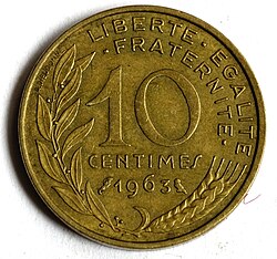 1963-cü ildə 10 Fransa santimi