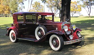 1930-cu illərin dördqapılı, iki vizual həcmli və şaquli arxa hissəsiylə. Kofr baqaj hissəsi görünüt..