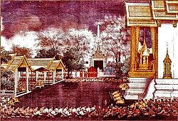 Ramakien səhnəsi Wat Phra Kaewdəki bir divar üzərində təsvir edilmişdir.