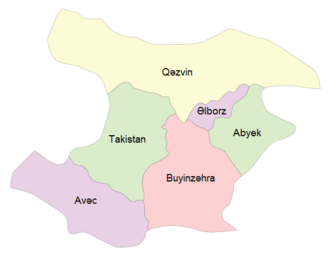 Takistan şəhristanının Qəzvin ostanındakı yerləşimi