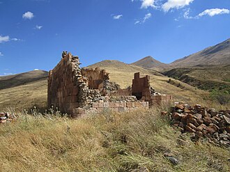 Bölgədə xristianlığın ilk dövrlərinə (IV–V əsrlərə) aid olan məbəd yarımdağılmış vəziyyətdədir. Məbəd qırmızı daşdan inşa edildiyi üçün yerli azərbaycanlı əhali onu həm də Qızıl kilsə adlandırmışdır. Tədqiqatçıların fikrinə görə bölgədə xristianlığın yayılmasına qədər abidə atəşpərəstlik məbədi olmuşdur. "Sünik tarixi" əsərinin müəllifi Stepan Orbeliana (XIII yüzil) görə isə məbəd 491-ci ildə tikilmişdir. Məbədin ətrafında XIII–XVII əsrlərə aid xaçdaşlar, qəbiristanlıq, qala xarabalıqları və s. abidə qalıqları vardır.