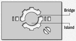 - üzərində çap olunan hərf, işarə və ya rəsm elementlərinə uyğun kəsikləri (boşluqları) olan lövhə.