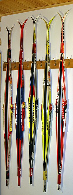 (150–220 santimetr) uzunluğunda, pəncə hissəi iti və yuxarı əyilimiş iki taxta və ya plastik materialdan düzəldilir. Xizəklər üzərində xüsusi bərkidilmiş çəkmələrlə ayağa geyindirilir. Xizəklərdə qar üzərində sürüşmə vasitəsilə hərəkət etmək olar.
