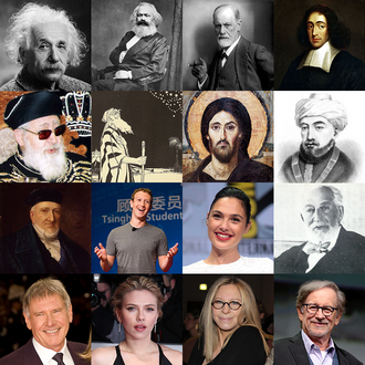 | I sıra: Eynşteyn, Marks, Freyd, Spinoza II sıra: Yosef, Musa, İsa, Nagid III sıra: Montefiore, Zukerberq, Qadot, Rotşild IV sıra: Ford, Yohansson, Streyzand, Spilberq | ||||||||||||||||||||||||||||||||||||||||||||||||||||||||||||||||||||||||