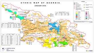 17–24 yanvar 2002-ci il ümumrespublika əhali siyahıyaalınmasının yekunlarına əsasən Gürcüstanın ümumi 4.371.535 nəfər əhalisinin 3.661.173 nəfərini və ya 83,75 %-ni kartvellər, 785.578 nəfərini və ya 6,51 %-ni azərbaycanlılar, 284.761 nəfərini və ya 5,69 %-ni ermənilər, 24.256 nəfərini və ya 1,55 %-ni ruslar, 4.896 nəfərini və ya 0,87 %-ni osetinlər, 70.973 nəfərini və ya 1,63 %-ni isə digərləri təşkil edir.