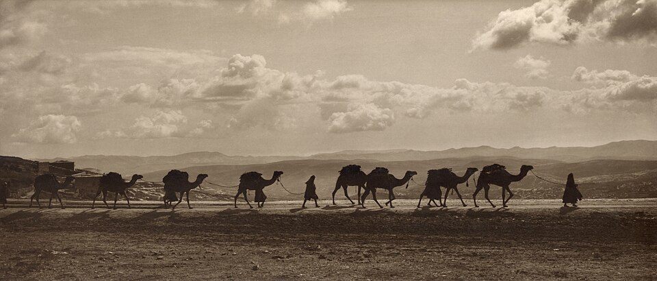 Karvanlarda xüsusilə çölü aşan ticarət yollarında tarix boyuncadəvələr seçilmişdir.(Misirli bir dəvə karvanı, 1918)