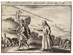 Misirdən sürgün edildikdən sonra bir müddət Nəcəfdə yaşadılar. Bethel və Ay bölgəsində İbram və Lutun böyük sürüləri eyni otlaqları tuturdu. Bu, hər bir ailənin maldarlarının probleminə çevrilib. Çobanlar arasında münaqişə o qədər şiddətləndi ki, İbram qardaşlar arasında münaqişə olmasın deyə Luta sol və ya sağ tərəfdə ayrıca bir sahə seçməyi təklif etdi. Lut şərqə doğru, Soara qədər bütün ölkəni yaxşı sulayan İordan düzlüyünə getmək qərarına gəldi. İbram cənubda Xevrona getdi və Mamre düzlüyində məskunlaşdı və orada Tanrıya ibadət etmək üçün başqa qurbangah tikdi.
