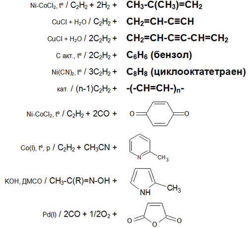 Sudan başqa asetilenin həll edilməsi üçün N-metil-pirrolidon, dimetilformamid, metanol, aseton, ammonyak istifadə olunur.