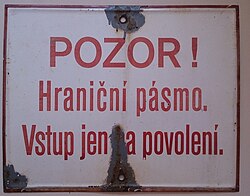 80-ci illərdə Cexoslovakiya sərhədində bufer zonası olduğunu göstərən lövhə